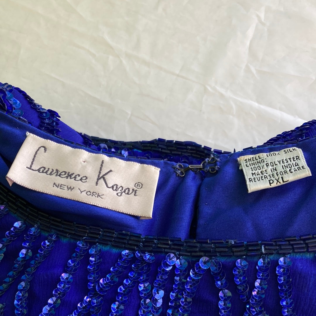 1980's Blue Silk Sequin Laurence Kazar Vintage Top Women's Size PXL