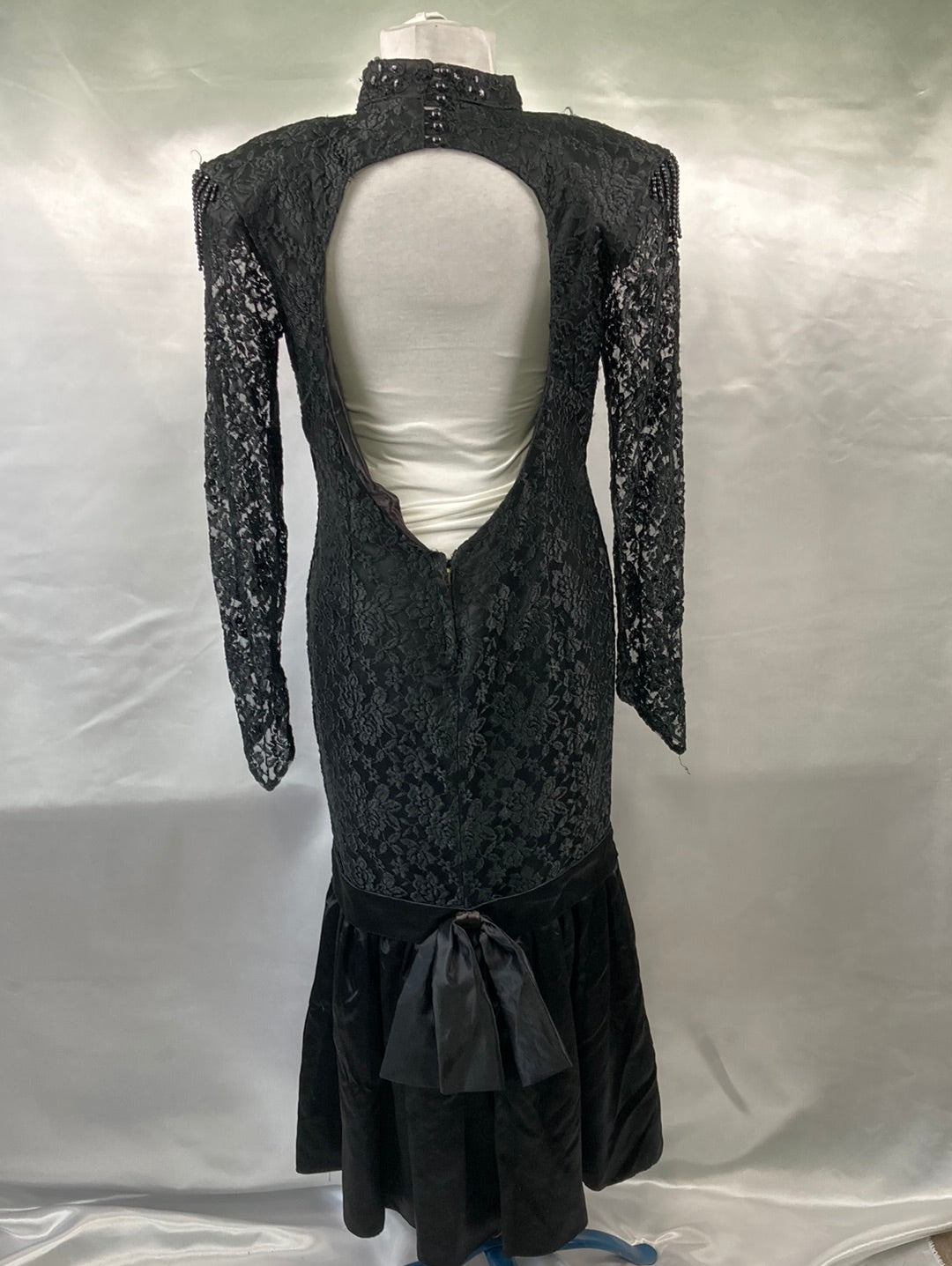 1980's Prom Black Lace Long Sleeve Dress Vintage Women's Dress Size sm/med