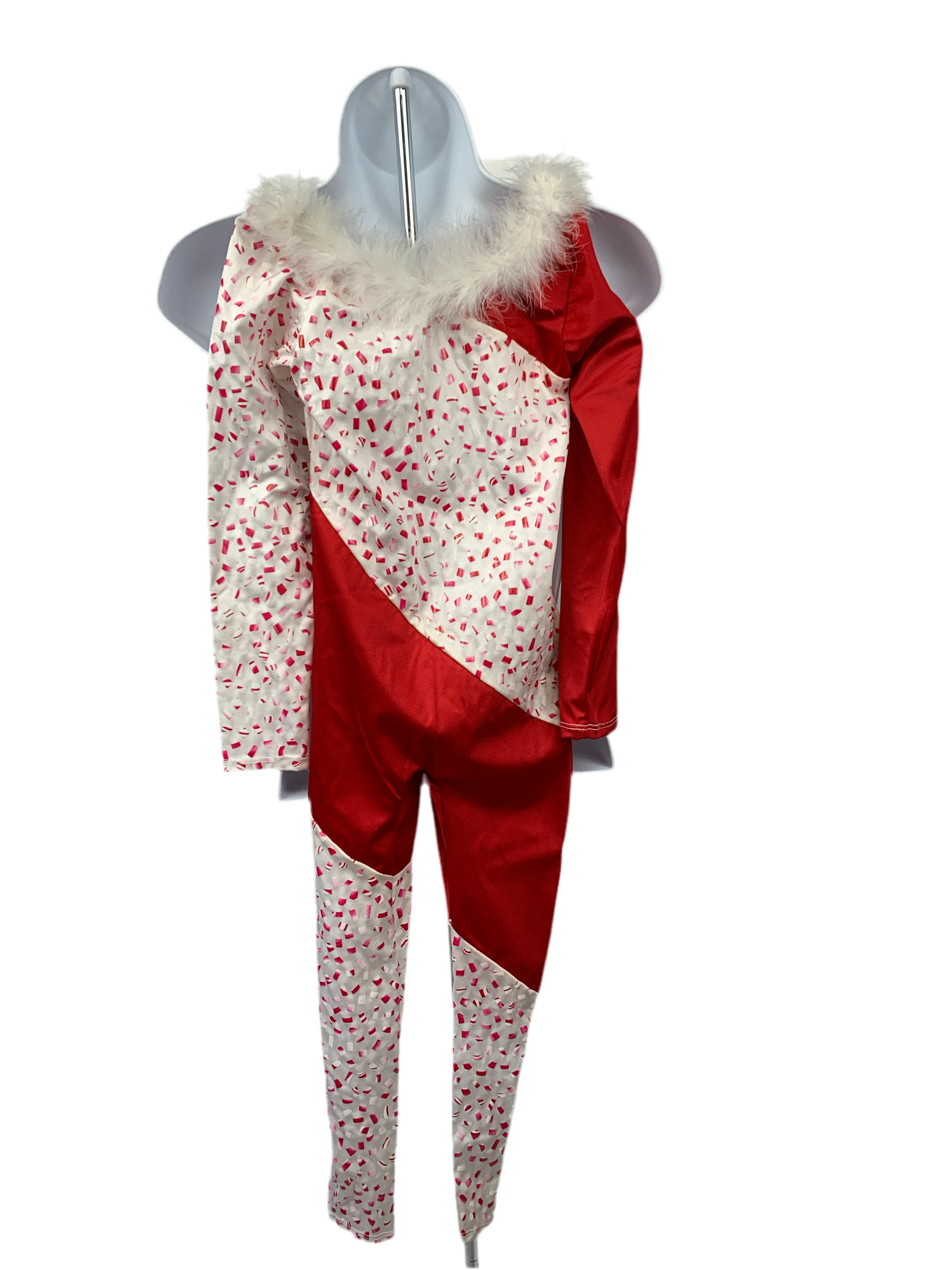 Candy Cane Unitard w/marabou Holiday Costume Child Small