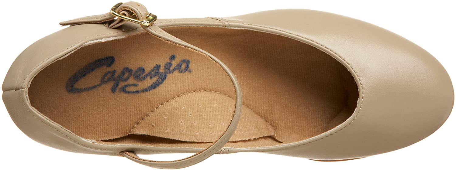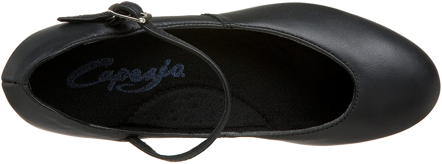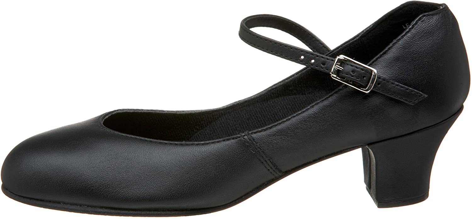 Capezio's Jr. Footlight shoe is perfect for any performance, whether it's character, theatrical, or you can even attach taps on its textured leather sole. The shoe features a traditional buckle closure for custom fitting, and a shapely, mid-cut heel that's just the right height.