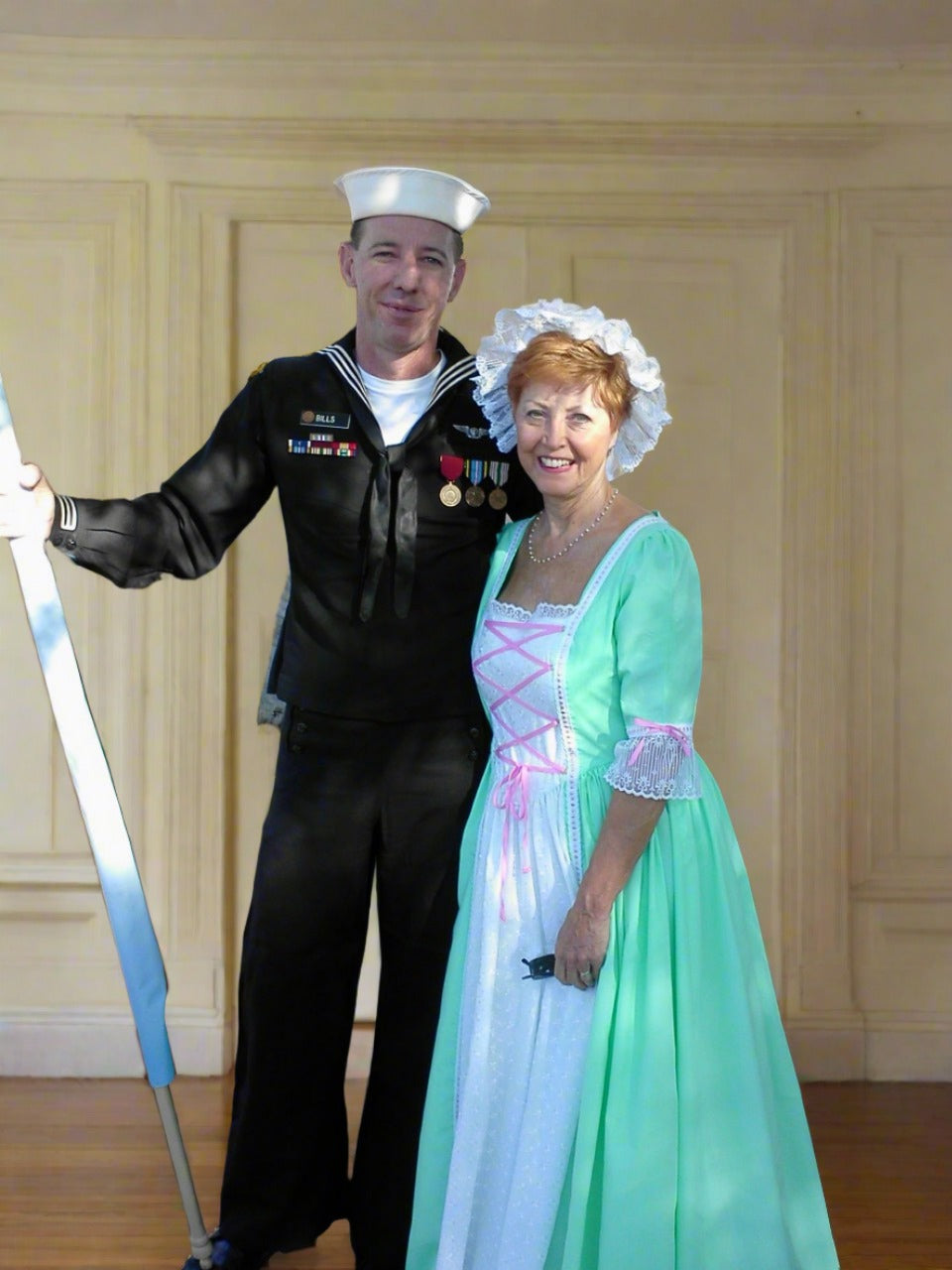 Colonial Full Length Dress with Ruffled Long Sleeve dress. Great for Colonial, Civil War or Pioneer reenactment.