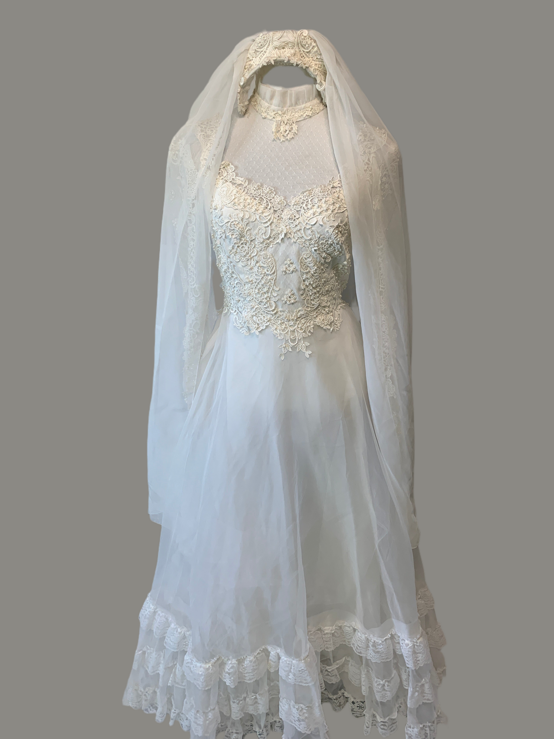 Wedding Dress & Veil - Long Sleeve, High Collar XS