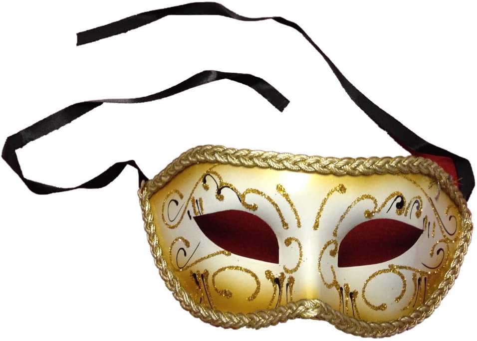 The perfect mask for a masquerade party. Featuring a fancy gold edge and glitter design.