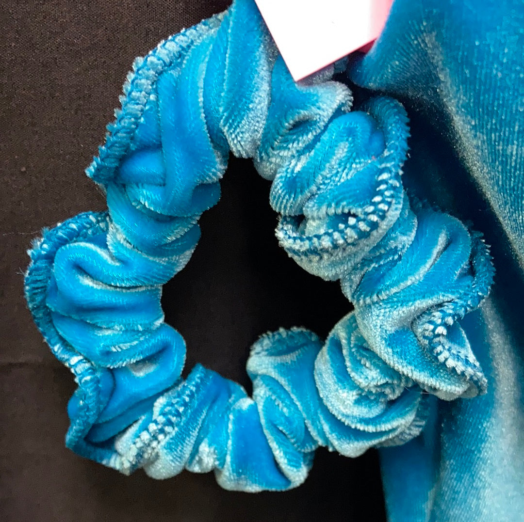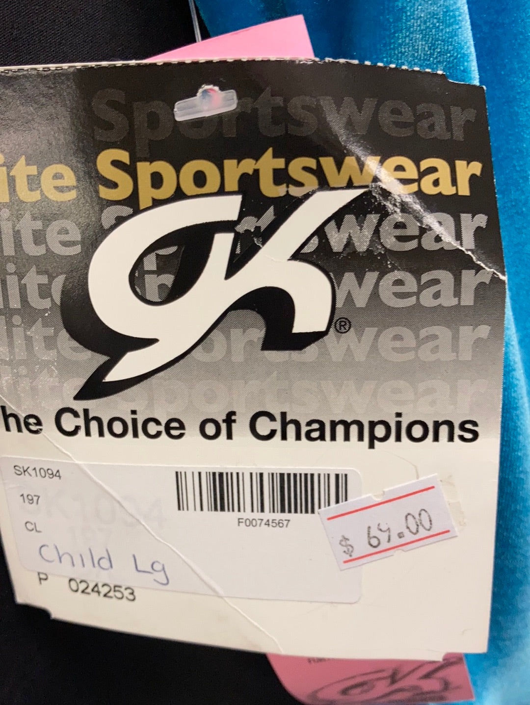 GK Figure Skating Dress Child Large Velvet w/Scrunchie Blue & Pink SK1094