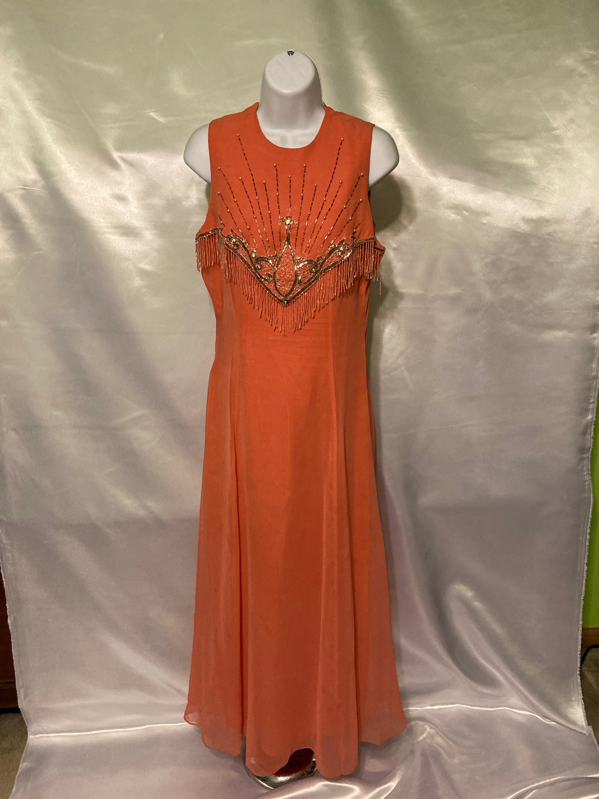 Jack Bryan Peach/ Orange Maxi Beaded Sleeveless Vintage Women's Dress 8 Medium