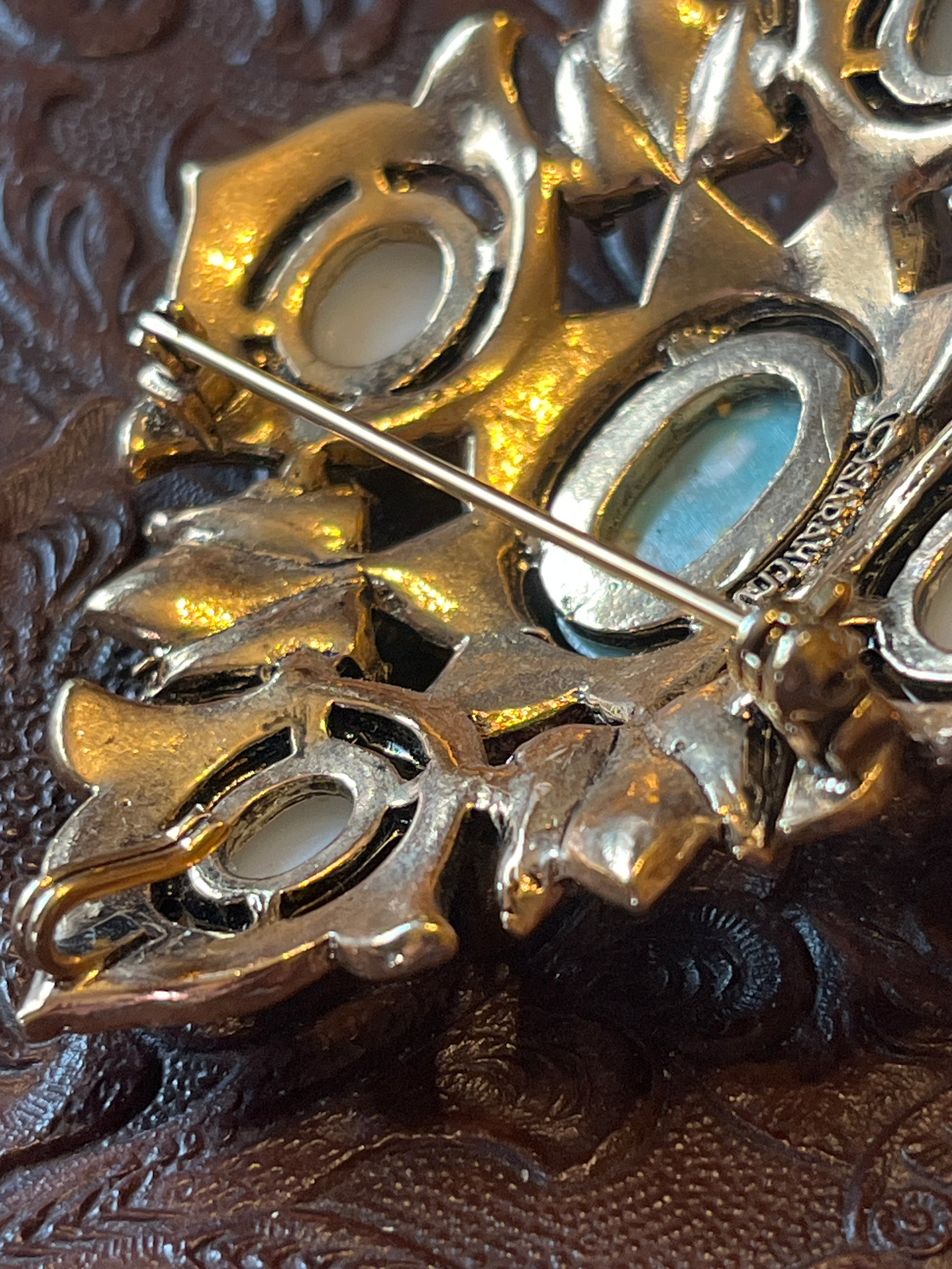 Sarah Coventry Remembrance Brooch Pin/Pendant Turquoise & Faux Pearls Cabochon c.1968 Vintage