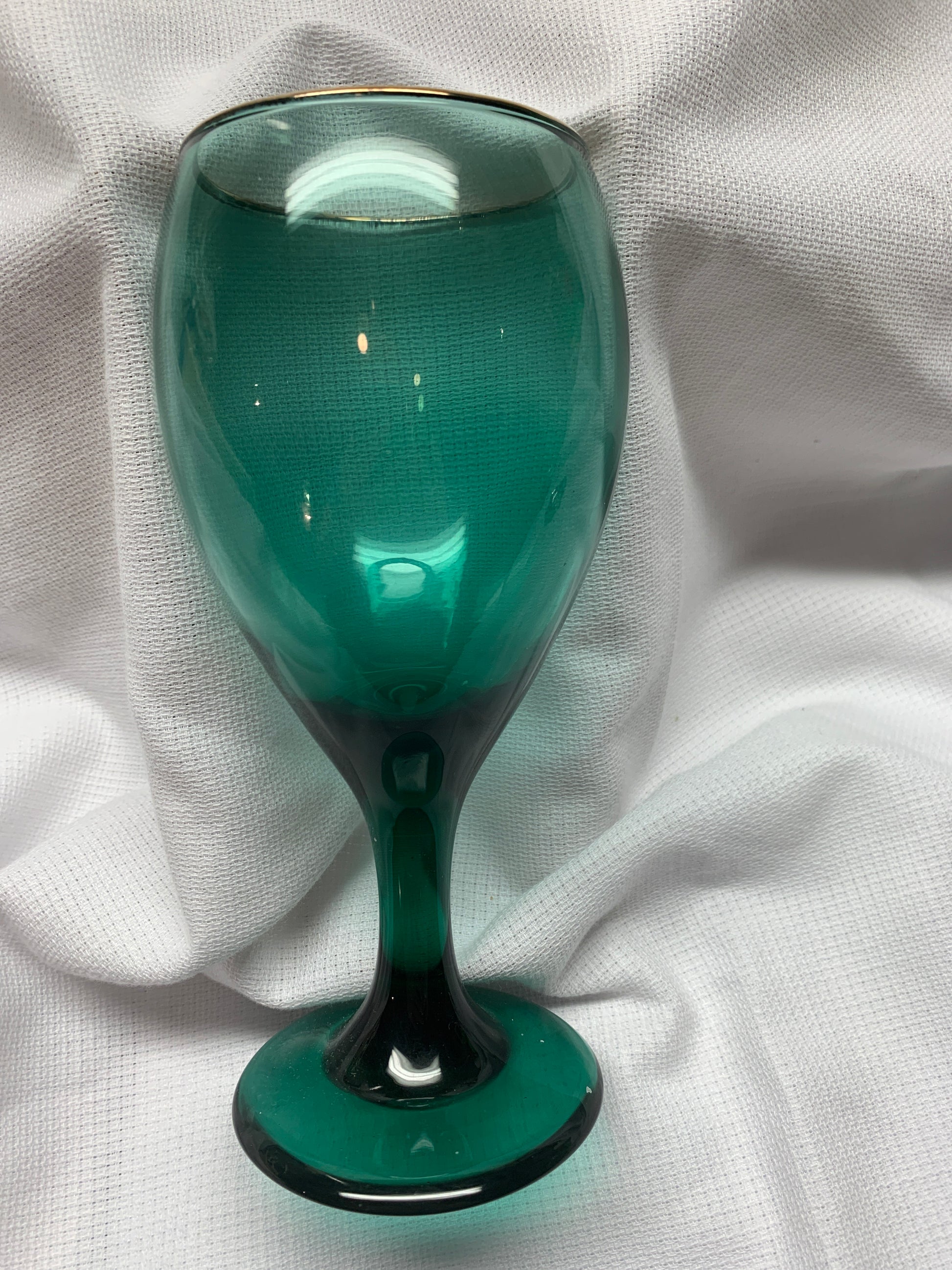 Vintage Juniper Green Libbey Teardrop Water Goblets with Gold Trim - Green Wine Glasses