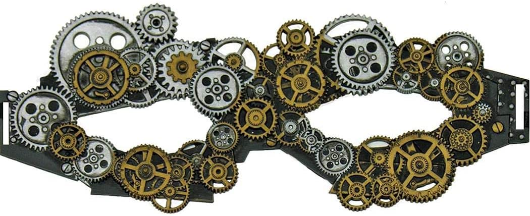 Steampunk Venetian Eye Mask Adult Costume Accessory, Gold Silver Gears