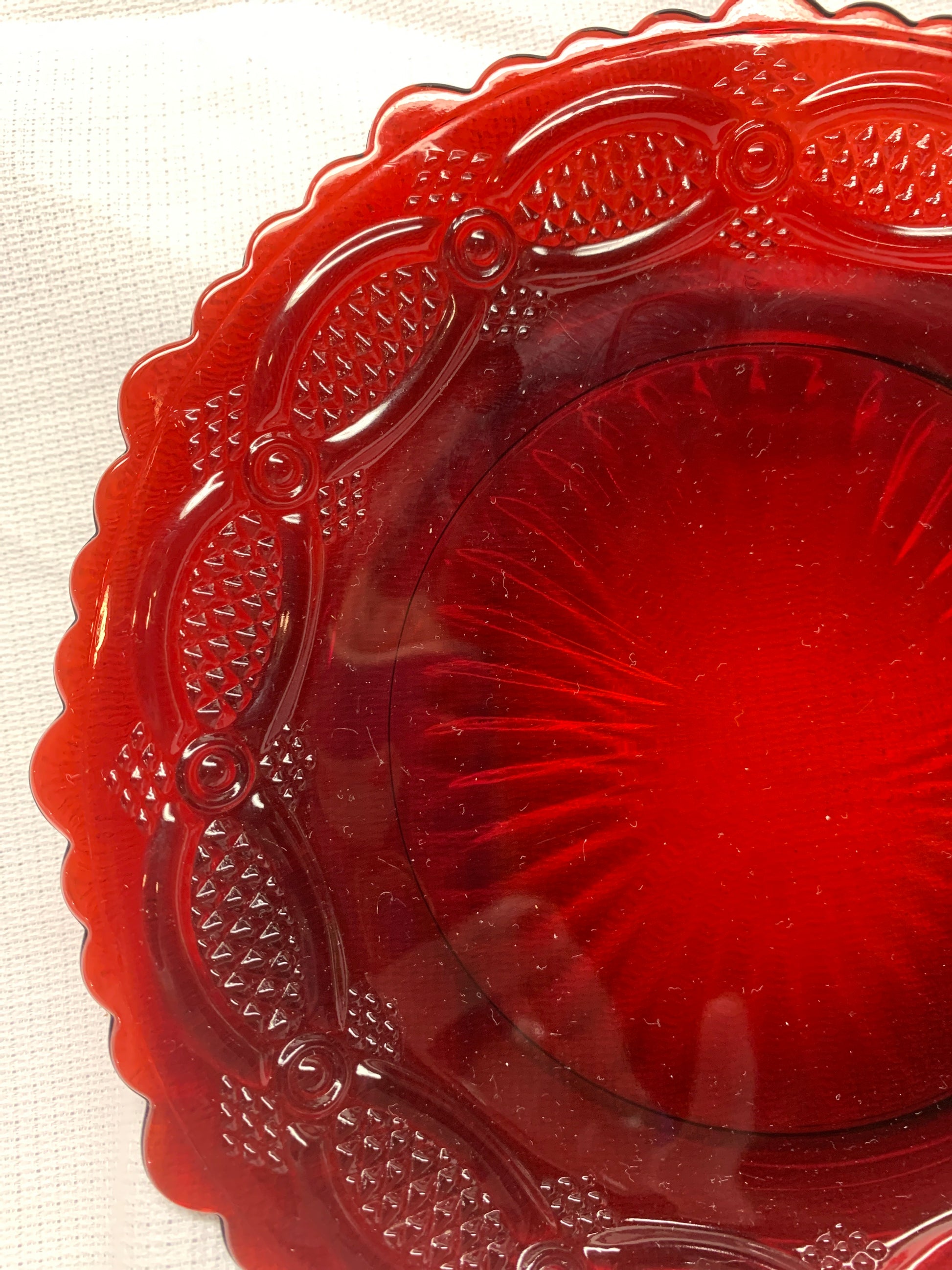 Vintage Ruby Red Glass Dessert Plates Cape Cod by Avon 7 1/2" VG preowned