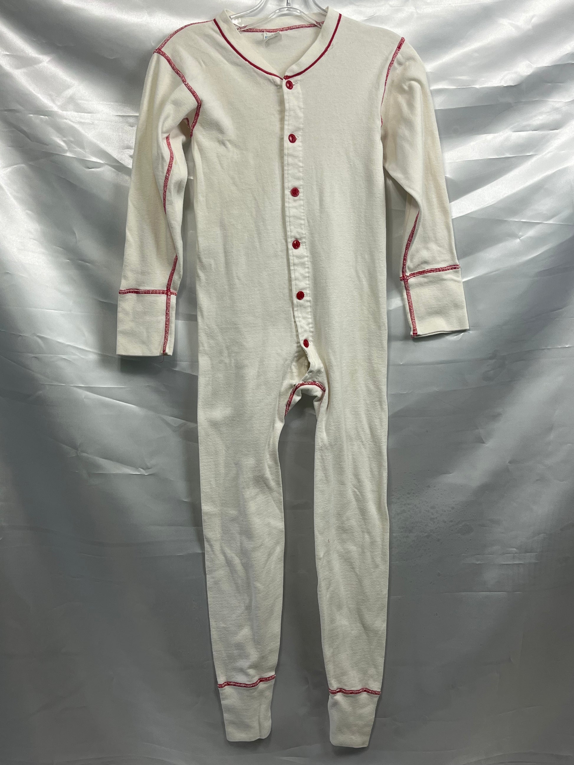 Vintage Union Suit Long Johns XS-Small White w/ Red Trim Preowned