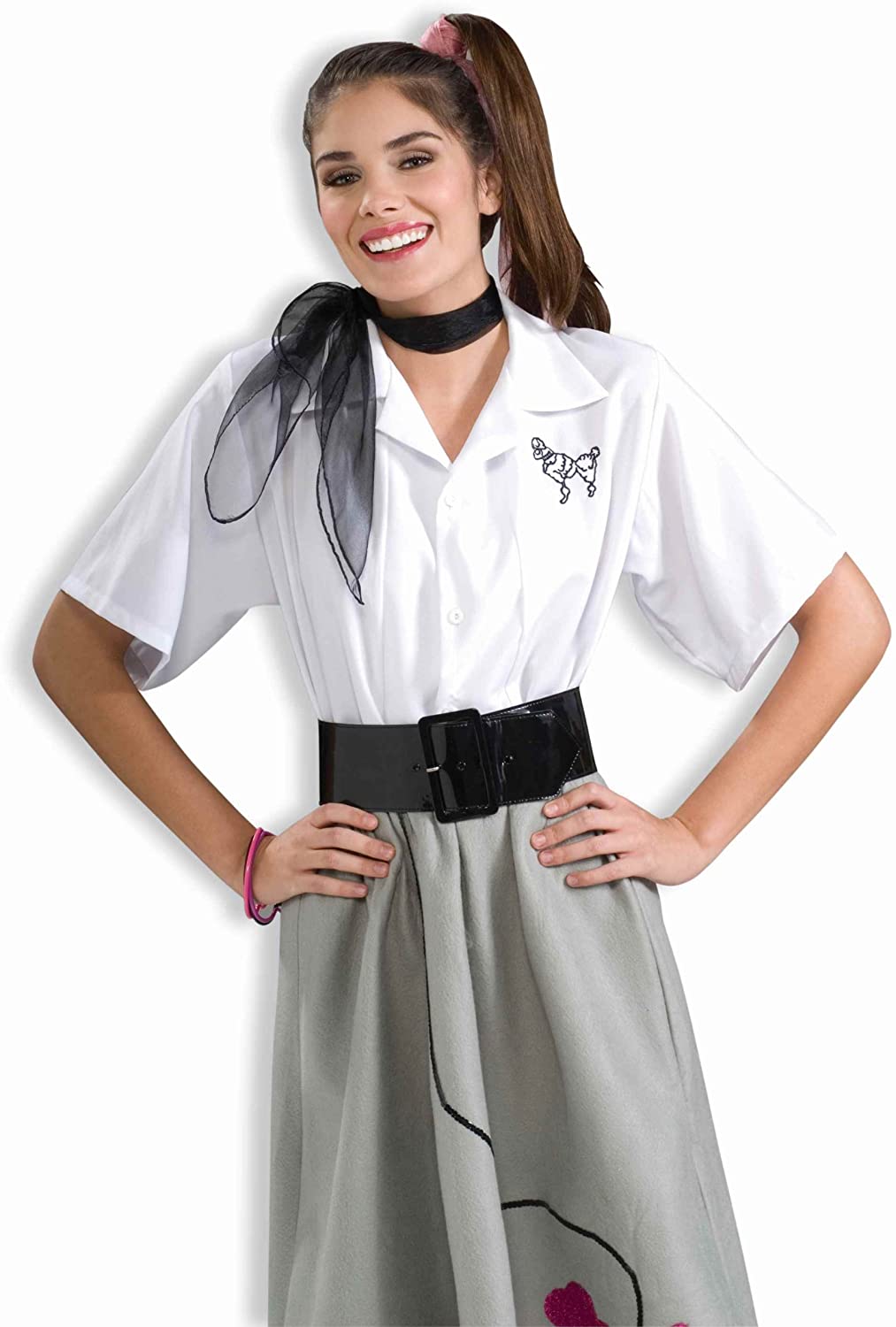Top off your 50's outfit with this White Blouse with Poodle applique.